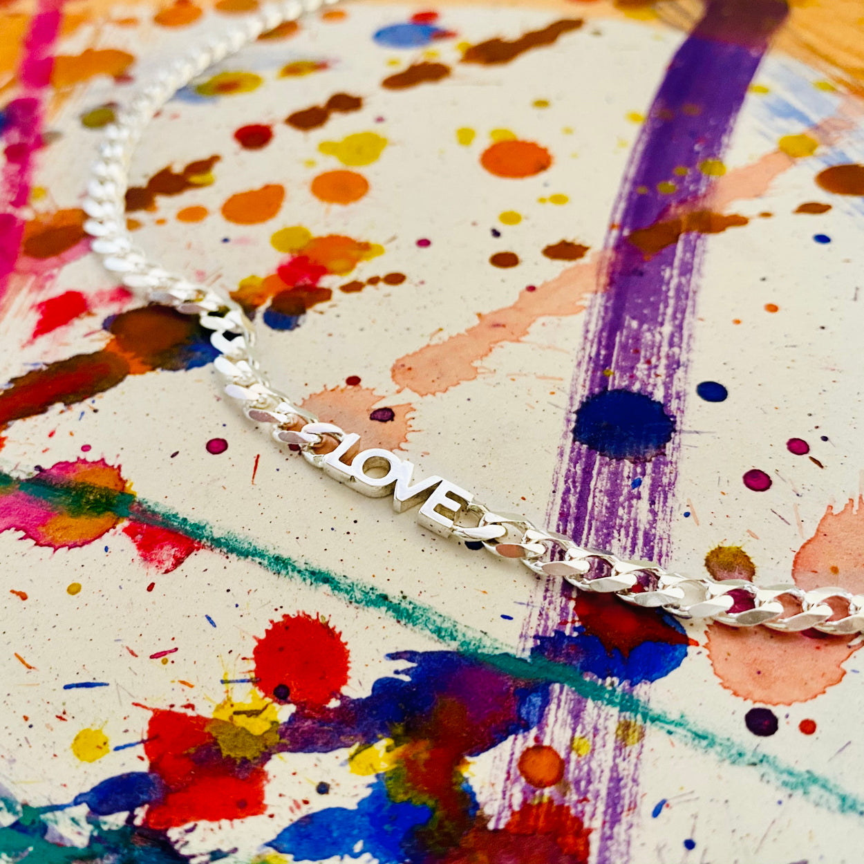 CHOOSE LOVE. LOVE is set in a 16” curb chain.