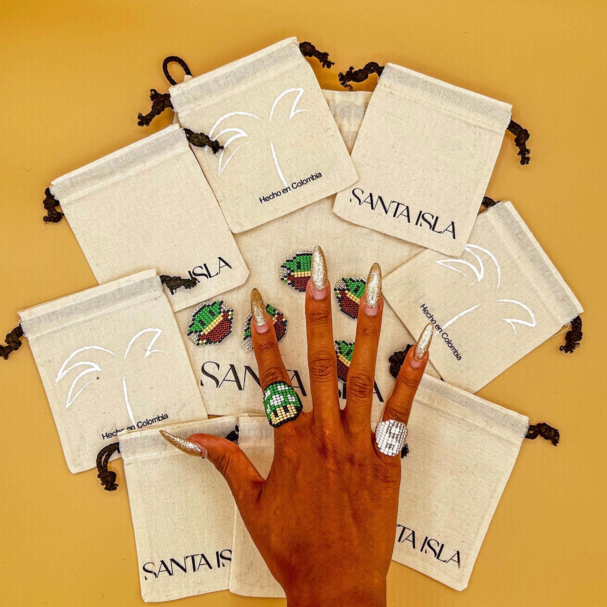 Santa Isla jewelry is handmade by Embera Chami artisans, providing them with an income source & opportunity to showcase their art to the world. The Embera believe that women bear the weight of the world on their shoulders. Each piece is made to adorn life’s path towards harmony & nature. Santa Isla, led by @sanchezsays, believes that by weaving the Embera beliefs with a little flare, magic is created for anyone to hold.