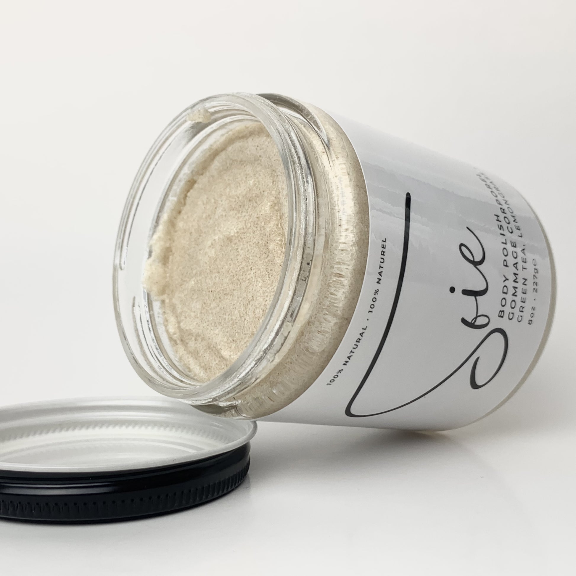 Sugar, Dead Sea Salt, Sunflower Seed Oil, Avocado Oil, Green Tea Butter, Shea Butter, Cetyl Alcohol, Green Tea Extract, Beeswax, Phenoxyethanol & Caprylyl Glycol & Sorbic Acid, Lemongrass Oil, Ginger Oil, Tea Tree Oil.
