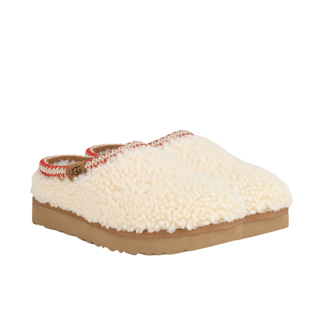The Tazz Maxi Tasman amplifies your day with a maximized platform for cushioning and bold style. This edition comes with a curly teddy bear upper whose cuddly appeal styles well indoors as out. The UGGbraid pattern is crafted from 70% recycled materials. The bottom-most layer of the platform outsole is made from ultra-lightweight materials. Pair this slip-on style with leggings or jeans for long days in lasting comfort.