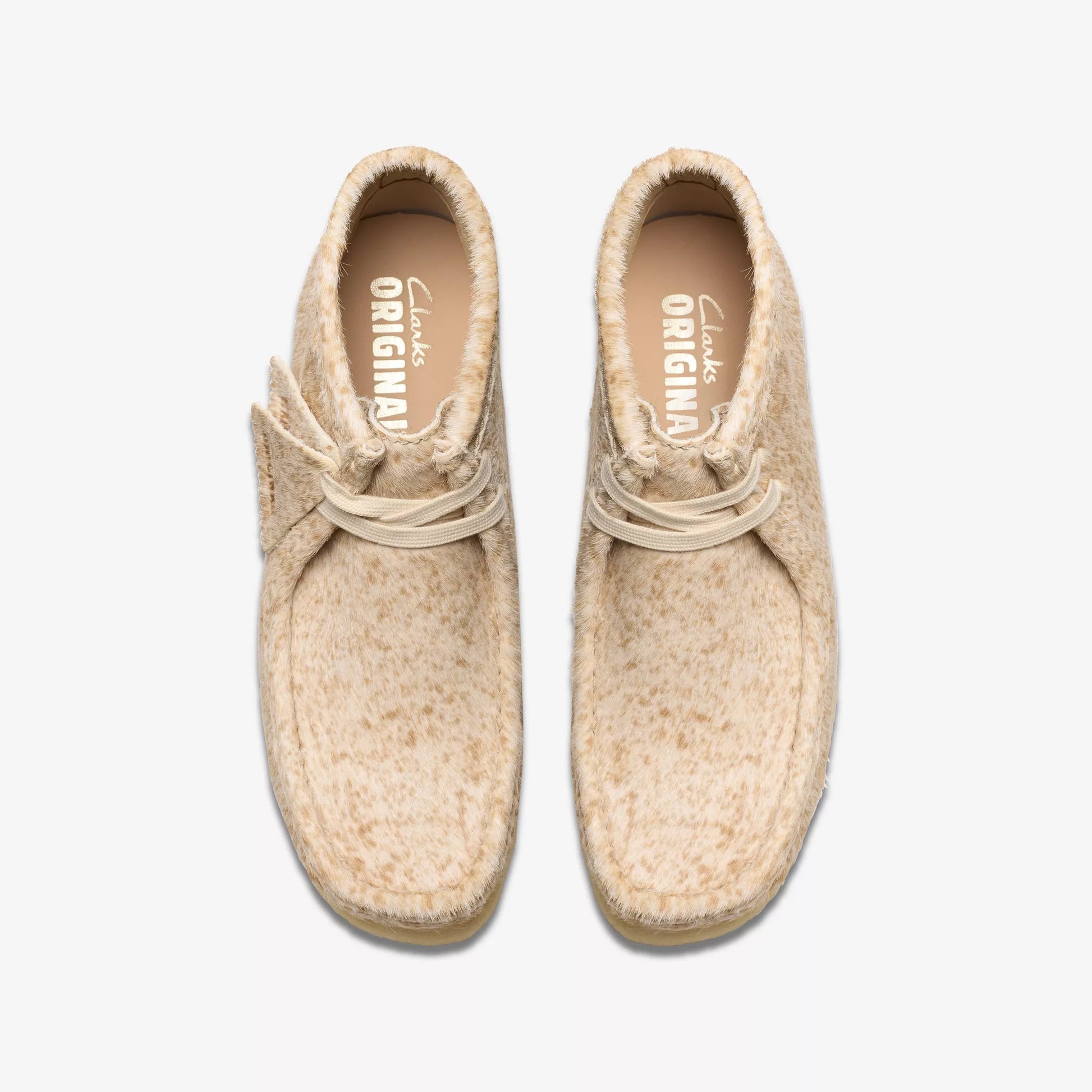 Our archival Wallabee Boot arrives with tactile hair-on leather uppers for fresh, new-season wear. Crafted with a subtle speckled effect, it comes together with flat lacing and tonal fobs that prove it's all in the details – while our iconic crepe sole stays true to its Original DNA. Due to the nature of the hair-on skin and the color of the natural hide, you should expect a level of variation between finishes. Each pair has a consistent look but may appear different to another pair. .